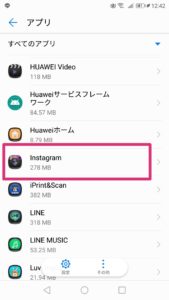 「アプリ」をタップすると、スマホにインストールされているアプリ一覧が表示されるので、そこから「インスタ」を探しタップしましょう。