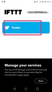 その後、IFTTTのアプリトップに移動して、「Twitter」が表示されていれば連携完了です。
