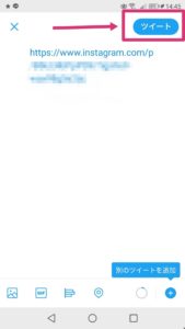 インスタの投稿リンクが貼り付けられれば、右上にある「ツイート」をタップして完了です。