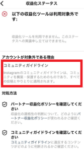 インスタで「あなたのアカウントは収益化の対象外です」という通知が来る