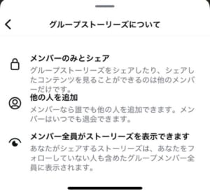 - グループストーリーにしか投稿していないストーリーを見せた場合