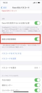 Face IDとパスコード→画面注視認識機能からオン/オフの設定可能です。
