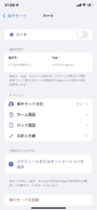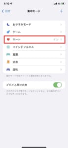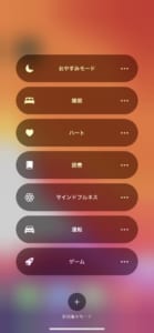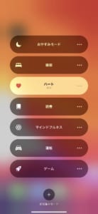 今回の場合はハートをタップすれば、ハートのアイコンで作成した集中モードがオンに切り替わります。