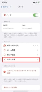 先ほどまでの手順で、集中モードの名前と外観を変更できる画面まで移動してください。