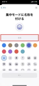 最初に名前をタップして、設定したい集中モードの名前を入力します。