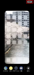 青色になっている場合には、ぼかしをタップしてぼかしフィルターをオフにします。