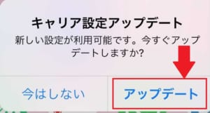キャリア設定アップデートがリリースされていると、この段階でアップデートを勧めるポップアップが自動的に出てきてくれます。