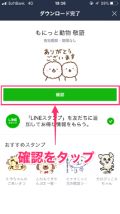 受け取るをタップするとダウンロードをする画面に移るので、「ダウンロード」をタップし、完了すると確認の画面になります。