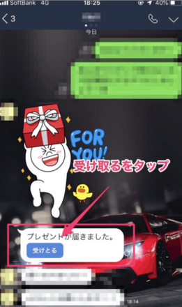 プレゼントされたスタンプを受け取る