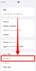 設定アプリを開き、画面を下にスクロールした先にある一般をタップ。次に、開かれたページの中にあるキーボードをタップします。