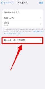 一番上のキーボードをタップ。表示された画面の中から、新しいキーボードを追加…をタップします。