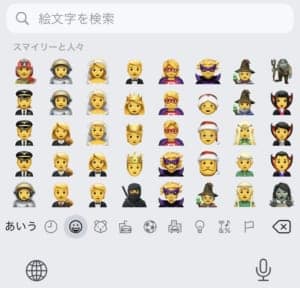 新しく追加された絵文字は、キーボード内にある絵文字のボードを使う事で出せます。
