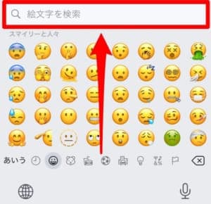 新しい絵文字を使いたい場合は、まずはキーボードを開き、ボード左下にある顔をタップしましょう。そうする事で絵文字のボードが開けますので、次に画面上部の検索欄をタップしましょう。