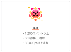 ★5ファンバッジの獲得条件は上記の通り厳しく、1ヶ月に30時間以上の動画視聴が必要となるため、そのライバーが1ヶ月30時間以上配信をしていることが前提となっています。