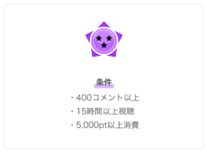 こうした時間の要件に加え、1,200以上のコメント、30,000pt以上の消費など、1つ1つの条件が難しいため、★5バッジを所持しているリスナーは非常に稀と言えるでしょう。