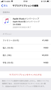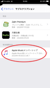 - アカウントの下の方にあるサブクリプションという項目をタップ