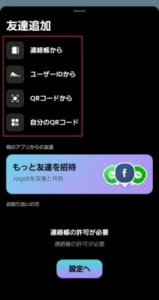 こちらから電話帳、ユーザーID、ORコードから友だち追加を出来ます。
