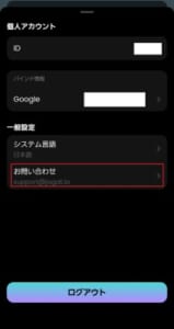 お問い合わせに進み、メールアプリからメールを送って問い合わせを行えます。