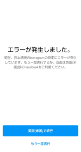 現在、日本語版のInstagramの設定にエラーが発生しています。もう一度実行するか、当面は英語(米国)版のFacebookをご利用ください。
