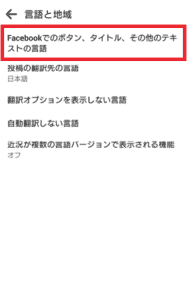 Facebookでのボタン、タイトル、その他のテキストの言語を選択し、デバイスの言語または日本語に設定します。