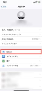 iPhoneの確認手順としては設定アプリを起動してApple ID、iCloud、メディアと購入をクリックします。