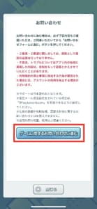 ゲームに関するお問い合わせをタップするとお問い合わせ時の注意事項が表示されるので、内容を確認した後にゲームに関するお問い合わせに進むをクリックしてください。