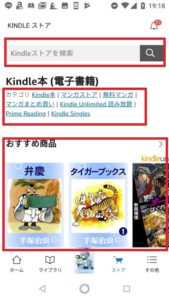 ログインが完了すると、Kindle無料アプリのトップページが開かれます。