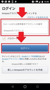 すると、Amazonへのログインを求められるので、Amazonに登録している情報を入力します。