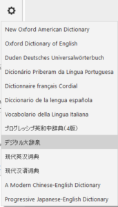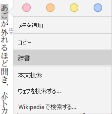 単語ダブルクリック、もしくは右クリックから「辞書」をクリックします。