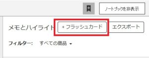 画面右上のノートブックをクリックし、「+フラッシュカード」をクリックします。