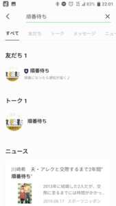 LINEの友だち追加の公式ラインアカウントから検索すると「順番待ち」というアカウントがあるので、友だち追加しておきましょう。