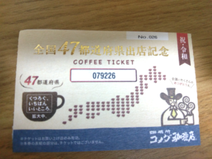 コメダ珈琲の店舗の中に青色のコーヒーチケットを発行する店舗が存在します。