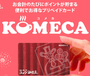 コメダ珈琲では「KOMECA(コメカカード)」というプリペイドカードがあります。