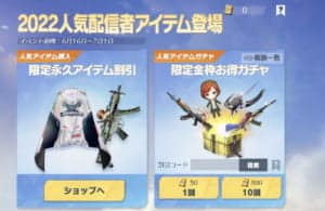 荒野行動の2022人気配信者アイテム登場イベントでアイテムをゲットする方法としては、ショップとガチャの二種類となっています。