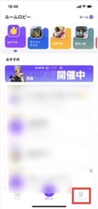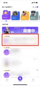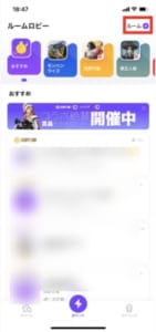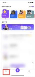 ルームを自分で作成したい場合には、ホーム画面上部にあるルームをクリックしてください。