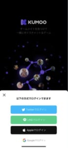 KumooのログインではSNSアカウントもしくはGoogleなどと連携してログインを行うことができます。