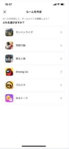 何のゲームのルームを作成するかを選択出来るので、自分がやりたいゲームのルームを選択してください。