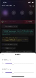 こちらで音量設定ができ、ルームボリュームとマイクボリュームの2種類を変更することができます。