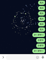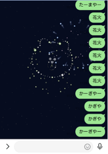 夏の季節になるとLINEでは、夏祭り仕様のトーク画面が表示されるようになり、花火エフェクトが表示されるようになります。