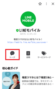 LINEモバイル公式アカウントを友達にしたら、再度LINEモバイルを選択し、LINEモバイルのアカウントページにアクセスしましょう。