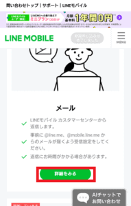 問い合わせを選択し、「メール」の下にある詳細をみるをタップします。