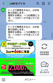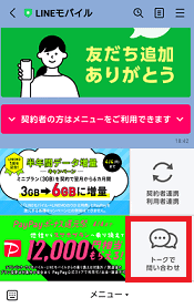 トークで問い合わせをするをタップすると、トークで問い合わせが出来るようになります。