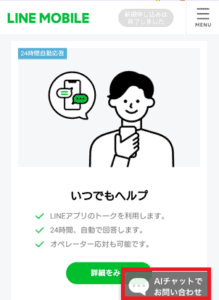 いつでもヘルプは、24時間自動で回答してくれるAIチャットで、AIチャットで対応できないことはオペレーターが対応してくれます。