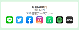 最新のものだと、SNS音楽データフリーというプランに加入していればインスタもカバーしており、過去であればコミュニケーションプリープランも該当していました。