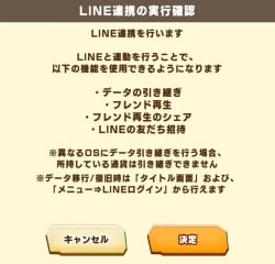 LINE連携の実行確認が表示されるので、しっかりと確認した後、大丈夫であれば決定をタップします。