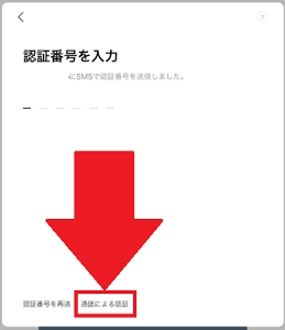 認証番号入力画面でSMSで送られてきたコードを入力してください。固定電話の場合は画面下部の通話による認証をタップして、電話料金がかかるという通知のOKをタップするとコードを自動音声が読み上げる通話がかかってきます。
