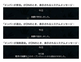 つまり、通知がオフになっていれば、一般参加者にバレにくい状態で退会ができ、強制退会も一般参加者にバレにくく執行できます。
