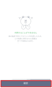 このメッセージが届いた後、LINEアプリの全ての機能が停止して「利用することができません」というエラー表示がされるようになります。