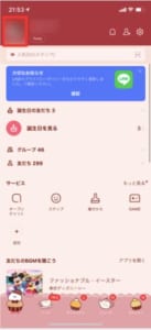 手順としてはホーム画面左上の自分のアイコンをクリックします。