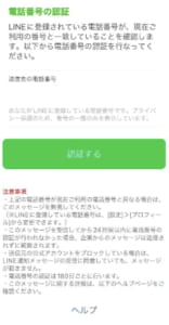 LINEに登録している電話番号宛に認証コードを送って問題ないか確認されるのでOKをタップしてください。